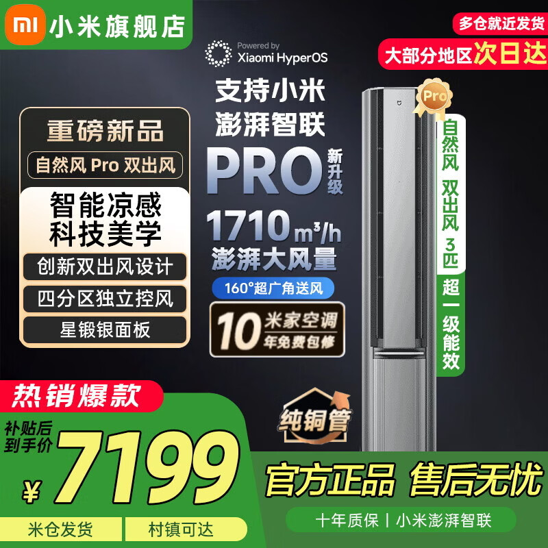 小米(MI)空调米家2匹/3匹巨省电Pro 立式柜机 大风口柔风新风自然风快速制冷暖变频家用低噪智能互联自清洁 3匹 一级能效 双出风自然风Pro星缎银【超大风量】