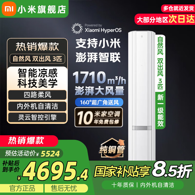小米(MI)空调米家2匹/3匹巨省电Pro 立式柜机 大风口柔风新风自然风快速制冷暖变频家用低噪智能互联自清洁 3匹 超一级能效 巨省电Pro【全面升级】
