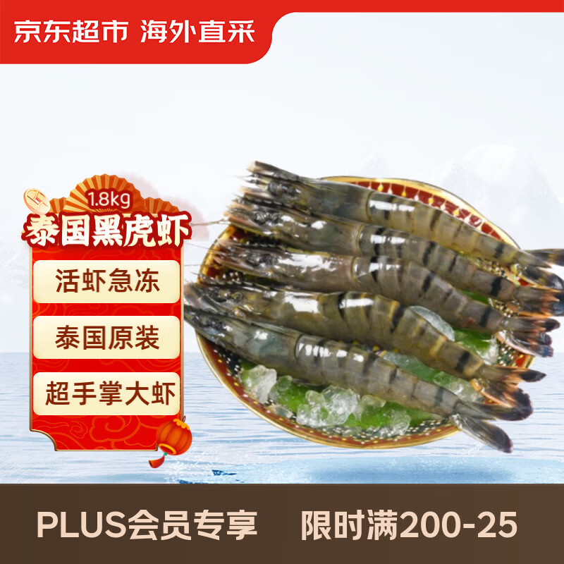 京东超市巨型泰国黑虎虾3.6斤 16/20规格 28-36只/盒 新老包装交替