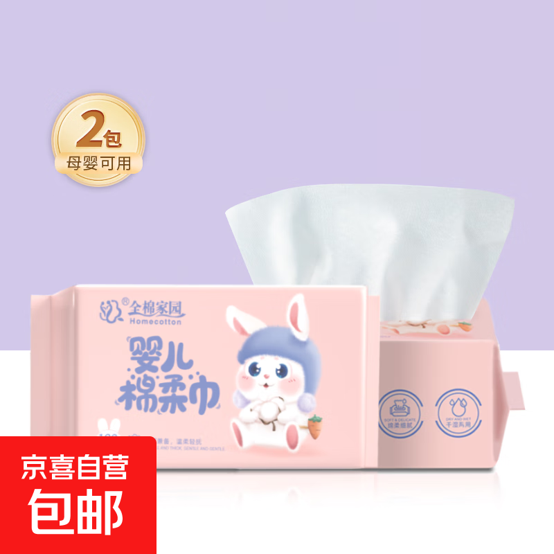 【100%植物源纤维】一次性婴儿洗脸巾平纹柔软亲肤洗脸巾干湿两用 婴儿洗脸巾100抽2包