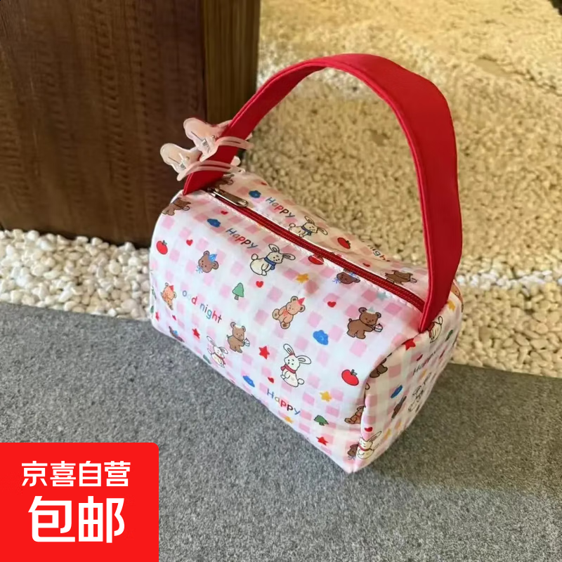 彩色点点高颜值卡通小熊兔子便携化妆洗漱包旅行收纳包立体手提包 活动三红色