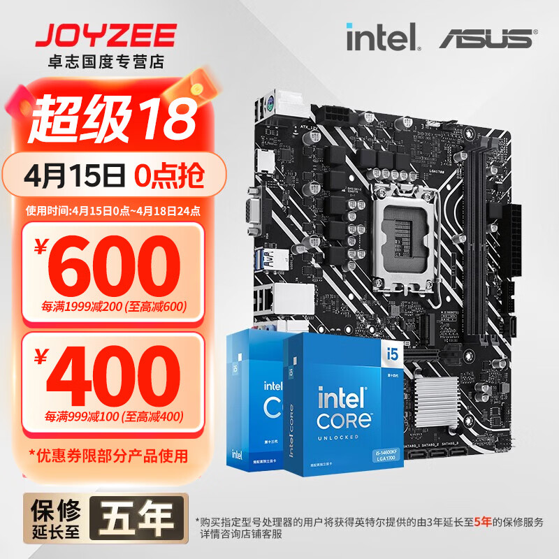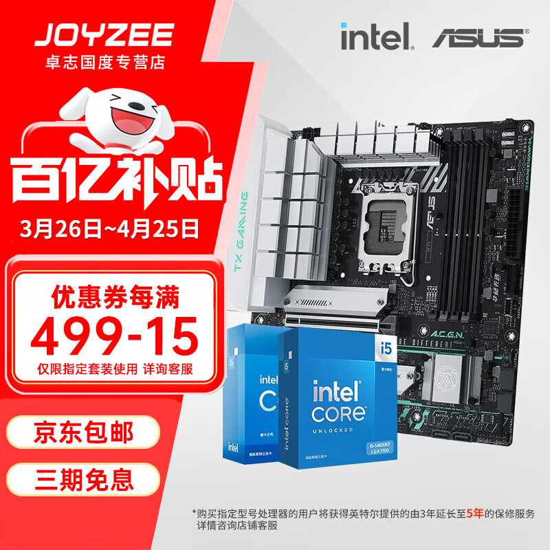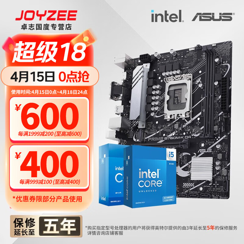 华硕B760 主板套装搭英特尔i5 13490F/14600KF/12600KF/12490F 主板CPU套装 华硕 PRIME H610M-K D4 ARGB i5 13600KF散片(三年质保)