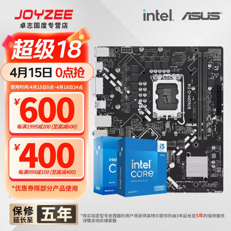 华硕B760 主板套装搭英特尔i5 13490F/14600KF/12600KF/12490F 主板CPU套装 华硕 B760M-G D4 I5 13400F免费升14490F盒装