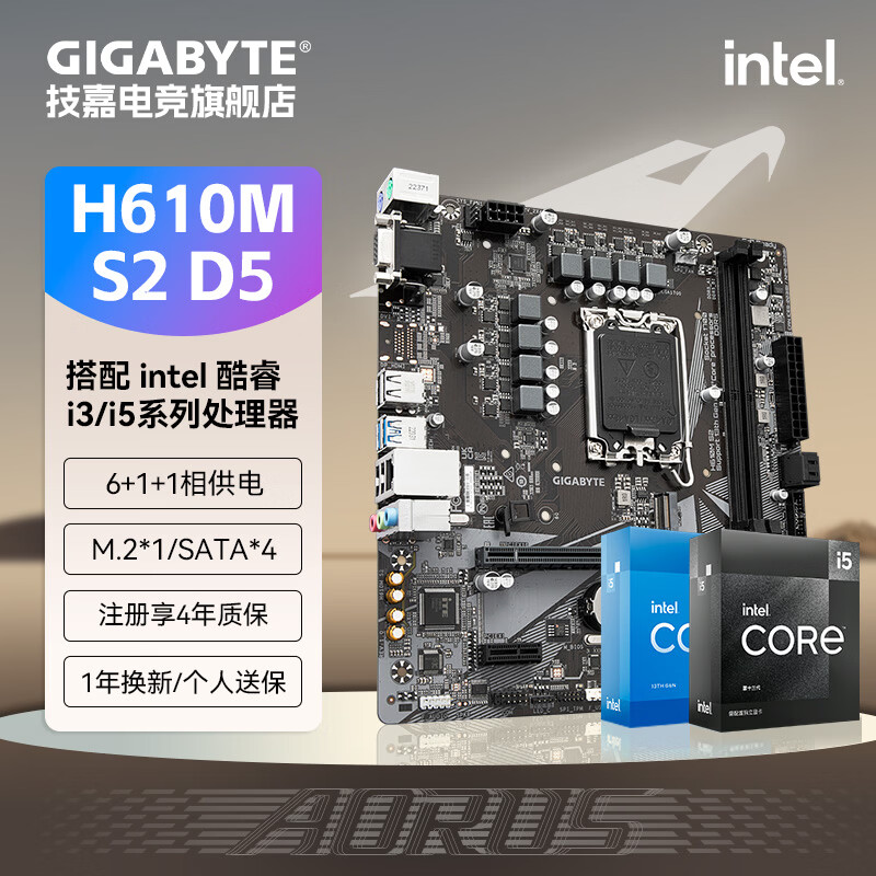 技嘉(GIGABYTE)英特尔 I5 12490F/13490F/12600KF/14600KF全新盒装CPU搭配B760M魔鹰主板CPU套装板U电脑台式机 H610M S2 D5 i3 12100F全新盒装 全国联保三年