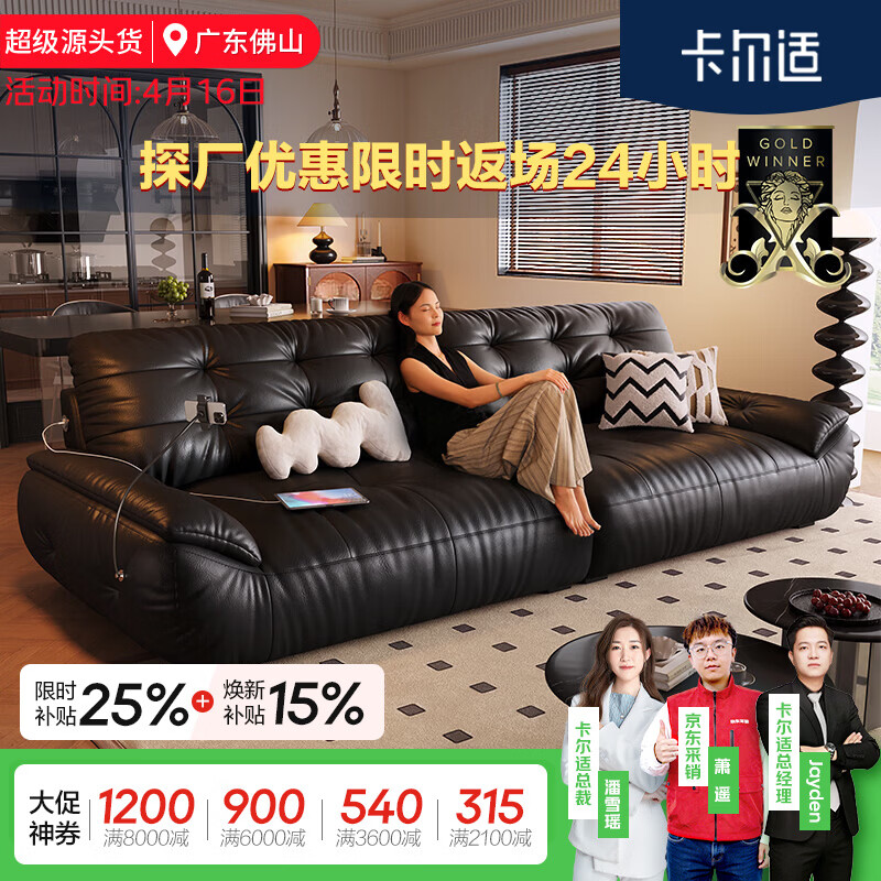 卡尔适头层牛皮沙发客厅家用沙发小户型2026新款直排中古真皮沙发太空云 多款牛皮选择 【旗舰版·云端坐感】1.8mm厚头层牛皮