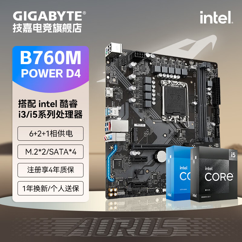 技嘉(GIGABYTE)英特尔 I5 12490F/13490F/12600KF/14600KF全新盒装CPU搭配B760M魔鹰主板CPU套装板U电脑台式机 B760M POWER DDR4 i5 12600KF全新盒装 全国联保三年