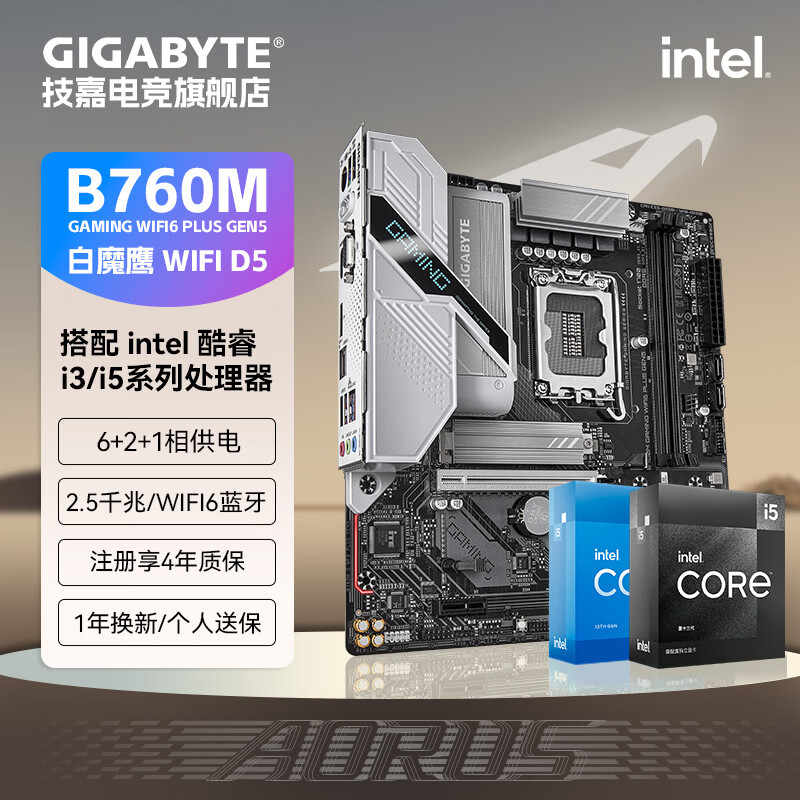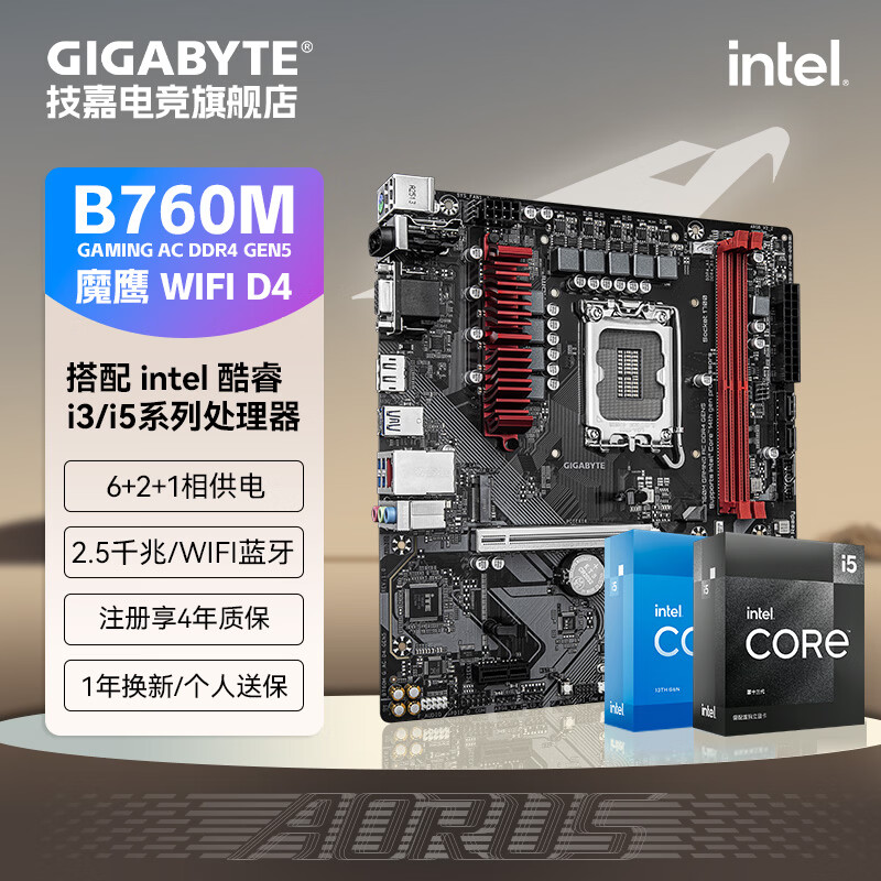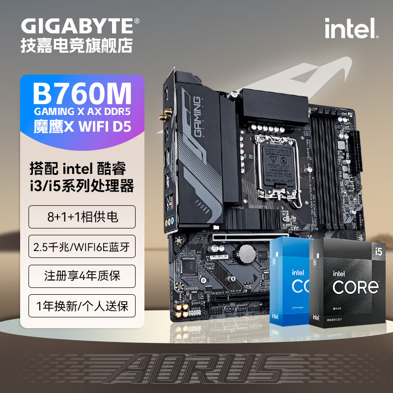 技嘉(GIGABYTE)英特尔 I5 12490F/13490F/12600KF/14600KF全新盒装CPU搭配B760M魔鹰主板CPU套装板U电脑台式机 B760M 魔鹰X AX D5带wifi蓝牙 i5 12490F全新盒装 全国联保三年