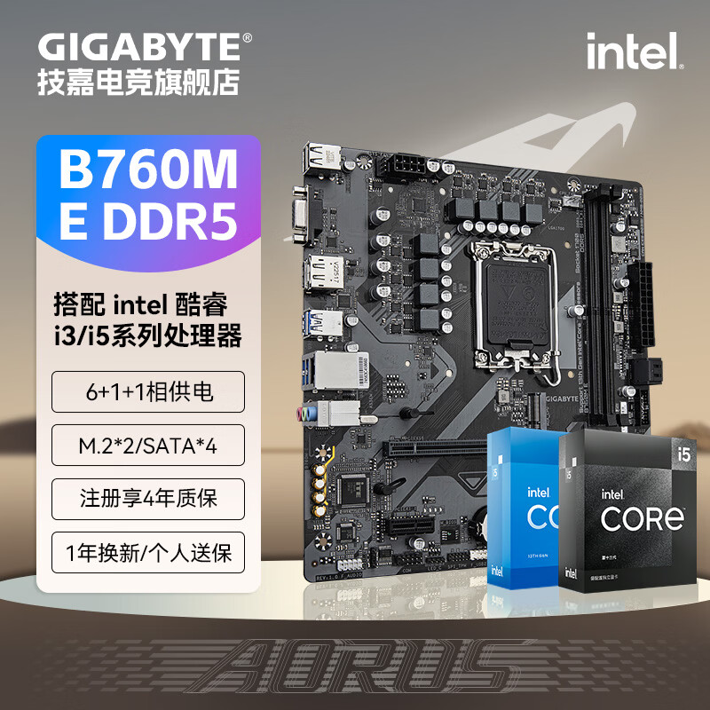 技嘉(GIGABYTE)英特尔 I5 12490F/13490F/12600KF/14600KF全新盒装CPU搭配B760M魔鹰主板CPU套装板U电脑台式机 B760M E DDR5 i5 12600KF全新盒装 全国联保三年
