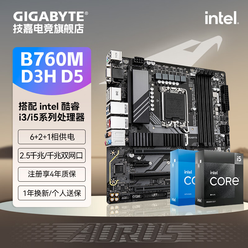 技嘉(GIGABYTE)英特尔 I5 12490F/13490F/12600KF/14600KF全新盒装CPU搭配B760M魔鹰主板CPU套装板U电脑台式机 B760M D3H D5双网口超强拓展 i5 12490F全新盒装 全国联保三年