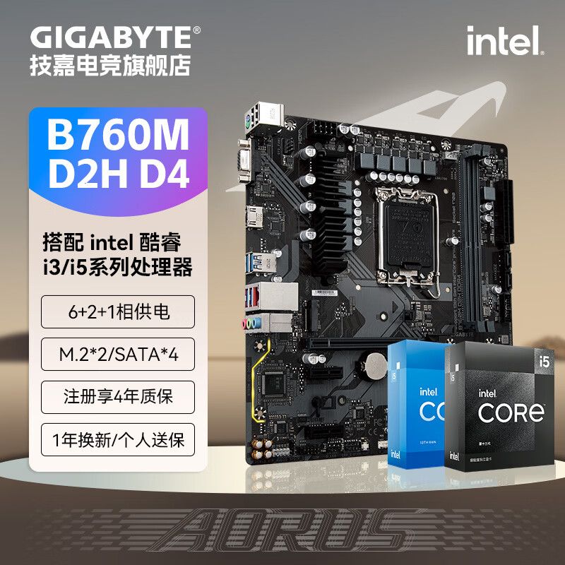 技嘉(GIGABYTE)英特尔 I5 12490F/13490F/12600KF/14600KF全新盒装CPU搭配B760M魔鹰主板CPU套装板U电脑台式机 B760M D2H DDR4 i5 12600KF全新盒装 全国联保三年