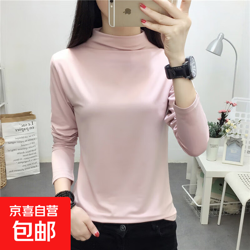 秋季小高领打底衫女内搭新款体恤长袖t恤打底百搭上衣半高领8003 粉红色 M 参考80-100斤