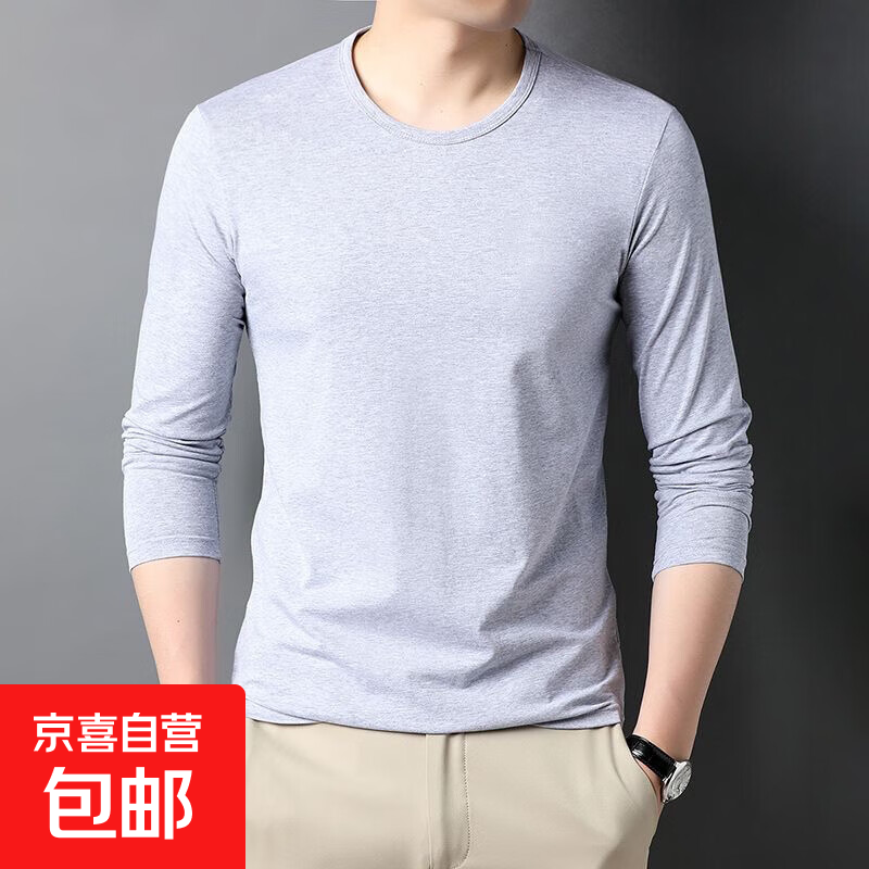 2025秋季新款纯色宽松圆领打底衫内搭上衣男士长袖t恤男 【常规长袖】浅灰 3XL