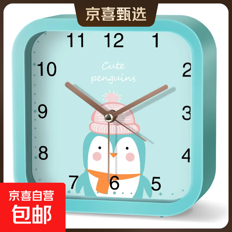 卡通静音闹钟学生用起床神器床头桌面儿童女孩男孩专用时尚小时钟 NZ280方形蓝色 (13厘米)