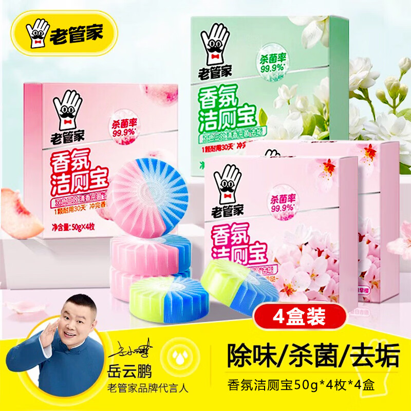 老管家香氛洁厕宝 蓝泡泡洁厕灵马桶清洁剂去异味除垢留香去渍洁厕块 200g 4盒 【混合香】
