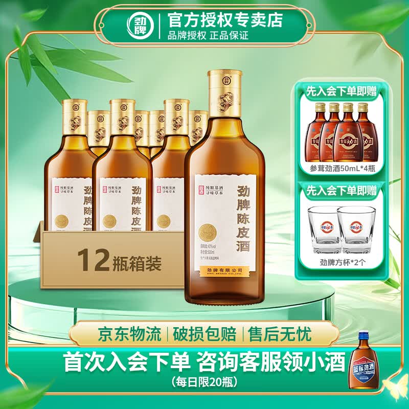 劲牌劲酒 陈皮酒40度 50mL/500mL 5味道地药材配制酒养生酒送礼送长辈 40度 500mL 12瓶 十二支装