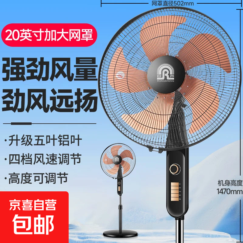 容声电风扇家用落地扇可摇头电扇大风力制冷卧室办公室宿舍大风量风扇可伸缩家用扇 20英寸【五叶铝叶/四档机械/60分钟定时】-黑色