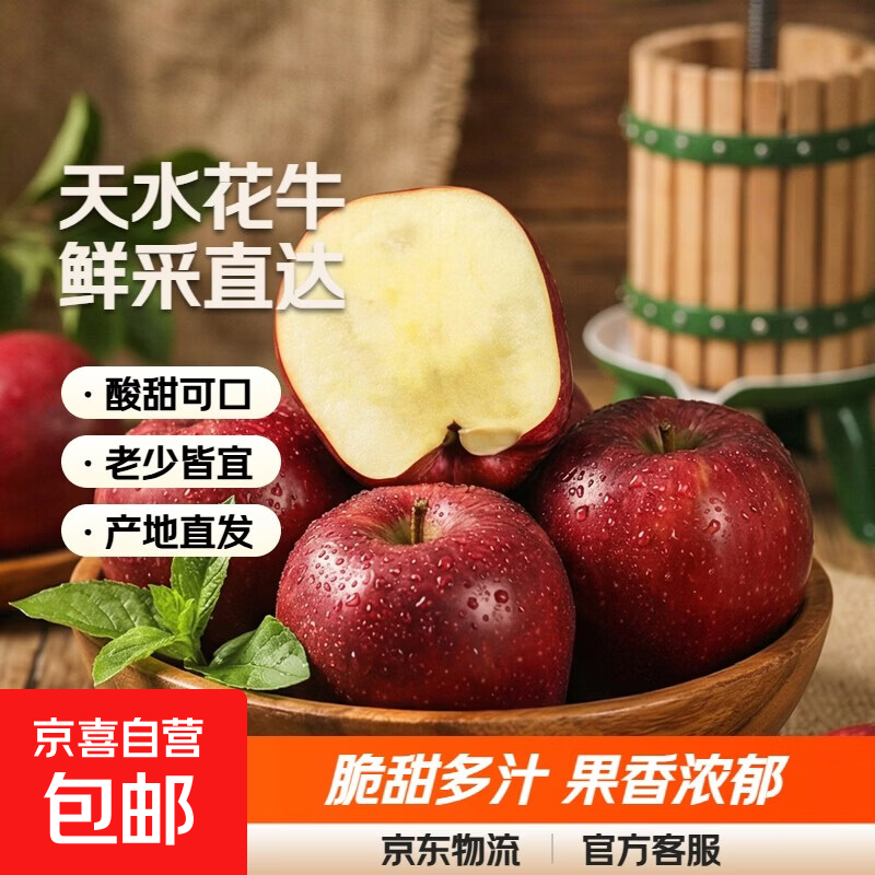 正宗甘肃天水新鲜采摘花牛苹果平安果 带箱3斤小果120g+