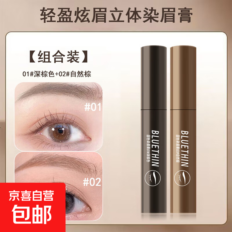 染眉膏浅色系自然立体持久不易脱妆不易晕染自然深棕速干野生眉毛 01#深棕色+02#自然棕