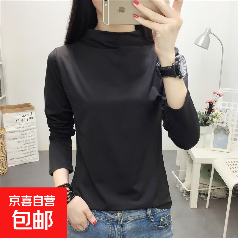 秋季小高领打底衫女内搭新款体恤长袖t恤打底百搭上衣半高领8003 黑色 2XL