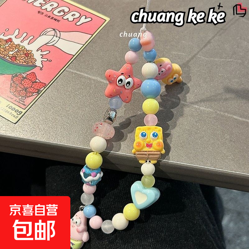 原创卡通四件套手机链通用包包串珠ccd相机挂饰三丽鸥可爱手机挂绳包包挂黄油小熊kitty海绵宝宝 海绵宝宝派大星