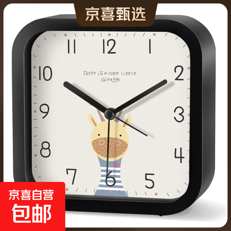 卡通静音闹钟学生用起床神器床头桌面儿童女孩男孩专用时尚小时钟 NZ317方形黑色 (13厘米)