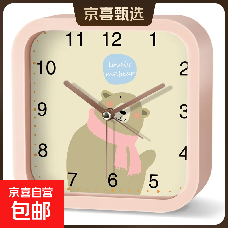 卡通静音闹钟学生用起床神器床头桌面儿童女孩男孩专用时尚小时钟 NZ279方形粉色 (13厘米)