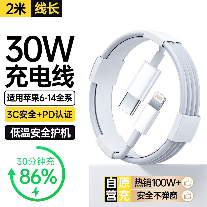 MICROKIA适配苹果充电器充电线氮化镓30/40W原装正品快充线套装iPhone13ProMax14 17 16手机15充电头数据线 【苹果6-14系列】PD快充线丨单线两米