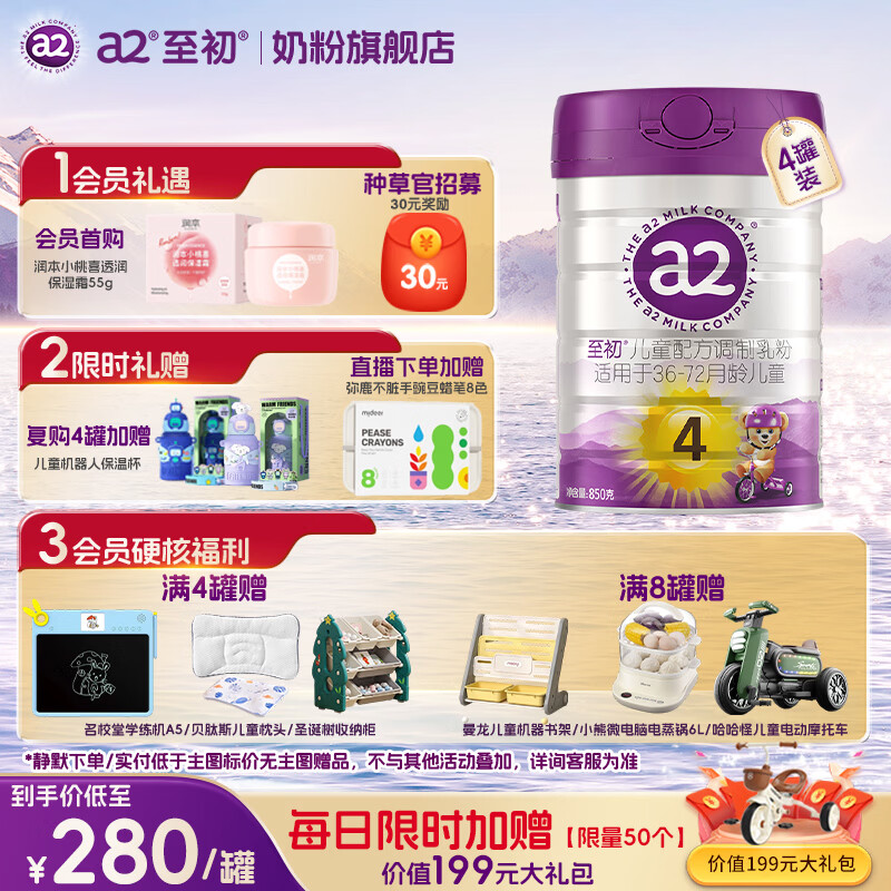 a2至初4段儿童(3-6岁适用)配方调制乳粉 850g 4罐
