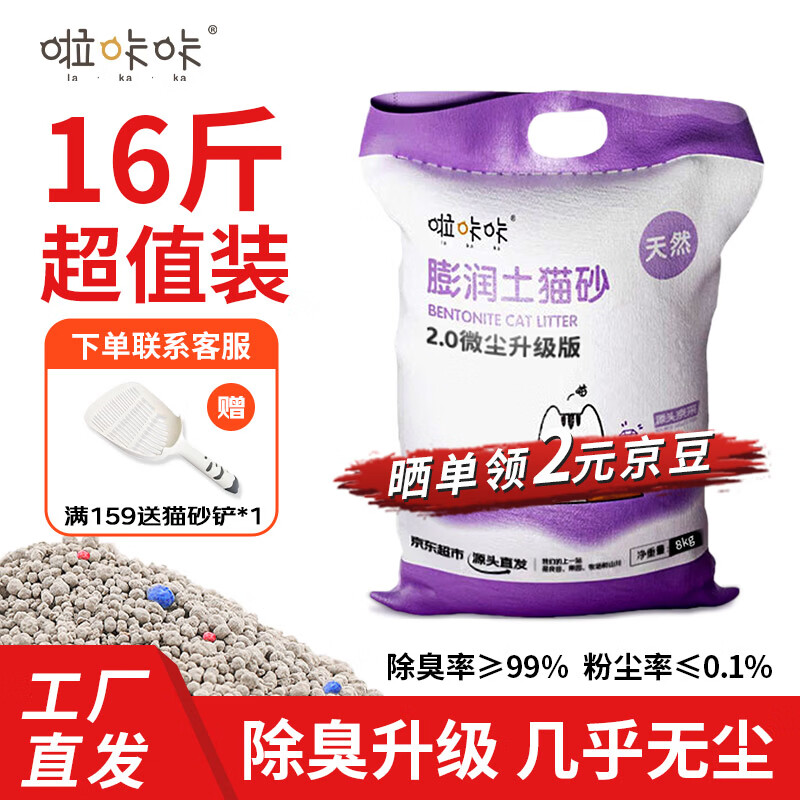 啦咔咔猫砂膨润土低尘除味结团猫砂猫咪用品几乎无尘猫砂 原味【工厂直发】16斤装