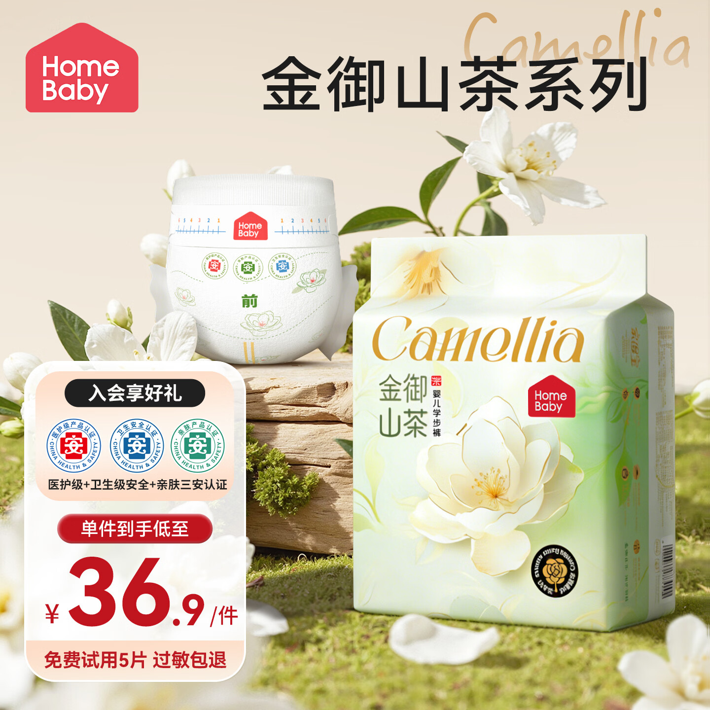 家得宝金御山茶拉拉裤超薄透气男女宝通用尿不湿敏感肌成长学步训练裤 金御山茶拉拉裤XXXL码20片