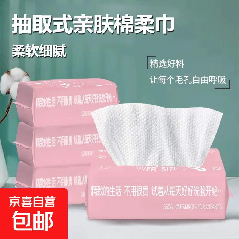 京东快递一次性男女清洁湿巾洗脸巾杀菌私处私护 加厚加粗免洗 粉色洗脸巾1包装100抽