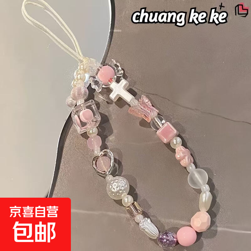 2025年新款手机挂件多巴胺樱花爱心ins彩色挂饰手工可爱串珠手机链女ccd挂绳相机挂件防丢钥匙挂扣 粉色樱花爱心手机挂件SJ-049