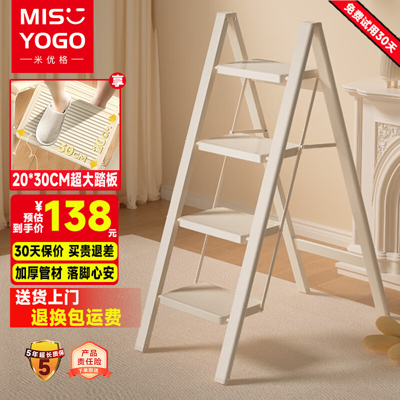 MISYOGO乔迁之喜梯子新居家用折叠多功能加厚花架置物搬家入户全红人字梯 加厚款奶油白-四步梯