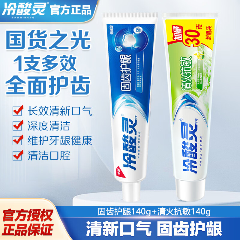 冷酸灵抗敏感牙膏洁净清新口气舒爽口感清火护龈护齿 固齿护龈+清火抗敏(280g)