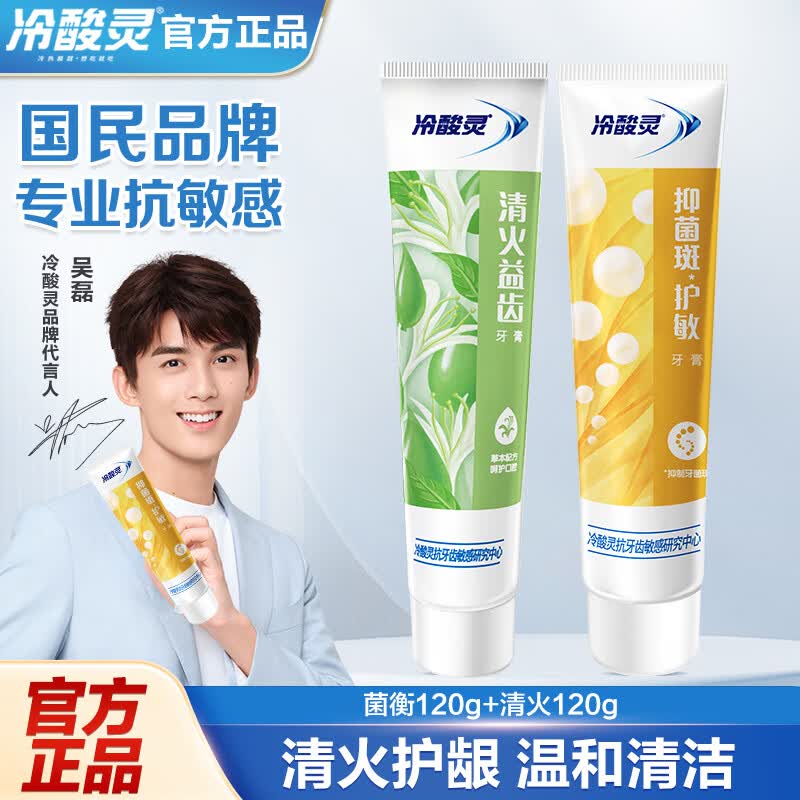 冷酸灵抗敏感牙膏洁净清新口气舒爽口感清火护龈护齿 清火菌衡2支装
