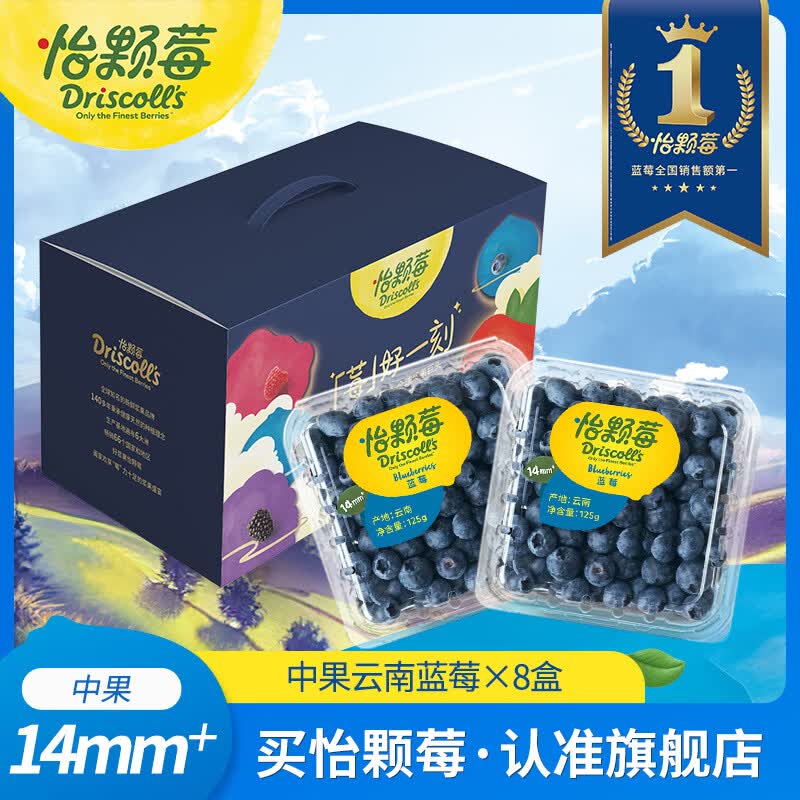 怡颗莓【颗颗饱满】当季云南蓝莓 国产蓝莓 新鲜水果送礼 【礼盒】中果125g*8盒(14mm+)