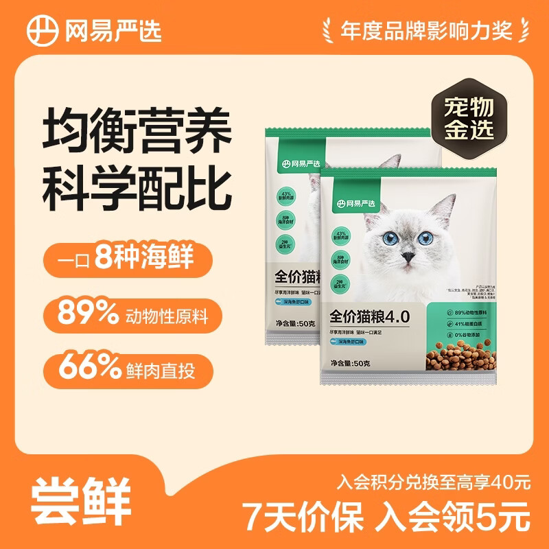 网易严选猫粮【推荐】全价猫粮 幼猫成猫主粮猫咪食品 一口9种肉 【4.0进阶款】深海鱼虾口味 50g*4袋