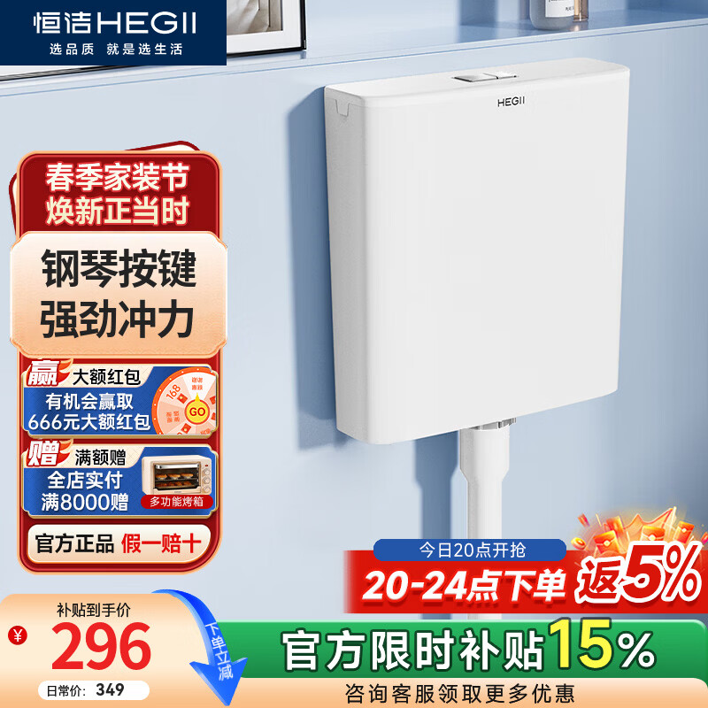恒洁(HEGII)专利款蹲便器水箱套装超薄防溅防臭卫生间蹲便蹲坑蹲厕大便器3026 6051大冲力水箱(含角阀软管)