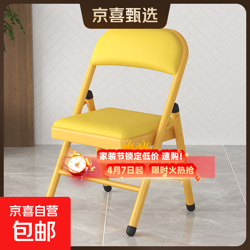 【京喜甄选】电脑椅折叠椅可折叠座椅工学椅凳子便携会议椅座椅 升级加固【黄色PU】
