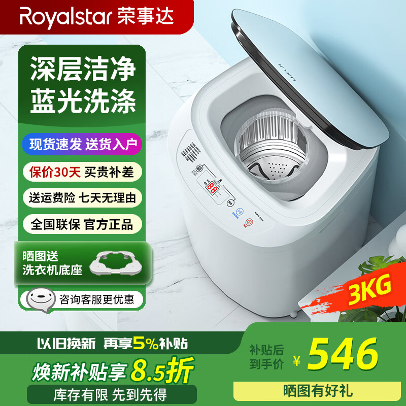 荣事达【高端系列】迷你高温煮洗4kg婴儿洗衣机全自动杀菌蓝光洗脱一体机家用儿童小型3.5公斤宝宝风干 3KG白【升级蓝光+洗脱一体】玻璃盖板 波轮