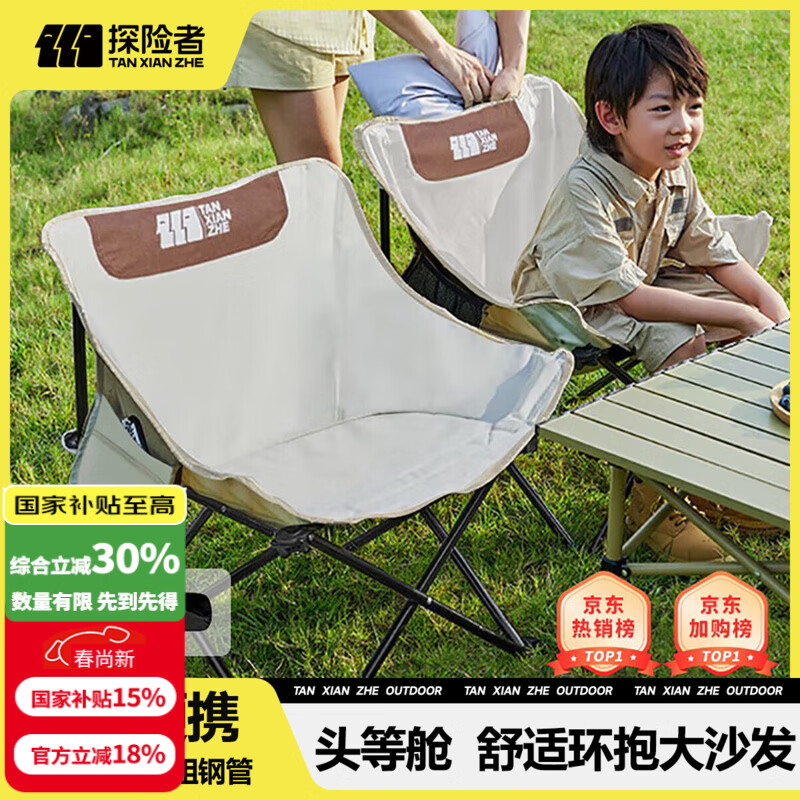 探险者(TAN XIAN ZHE)户外折叠椅露营椅子月亮椅便携折叠桌椅高靠背躺椅小凳子钓鱼椅 以下为加厚面料豪华软包款