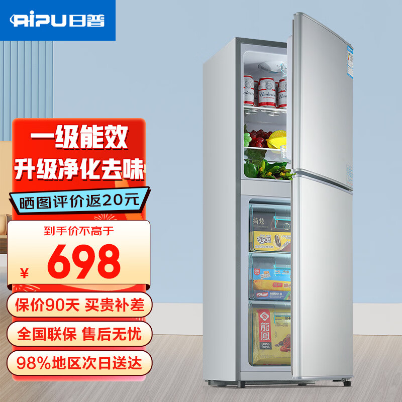 日普(RIPU)双门冰箱小型家用一级能效小冰箱迷你小型宿舍出租房办公室节能省电冷藏冷冻电冰箱 【升级净化去味】177升抽屉款【冷藏3层冷冻3层】