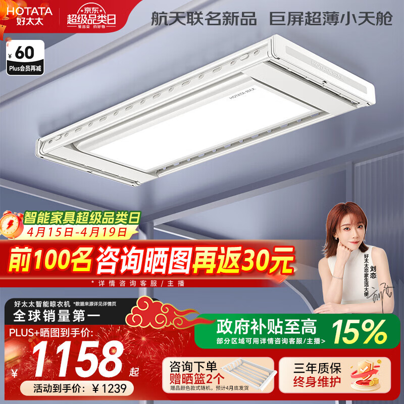 好太太电动晾衣架智能晾衣机隐形嵌入式全自动智能升降阳台伸缩晾晒衣机 D-3070T:航天联名款+大屏照明