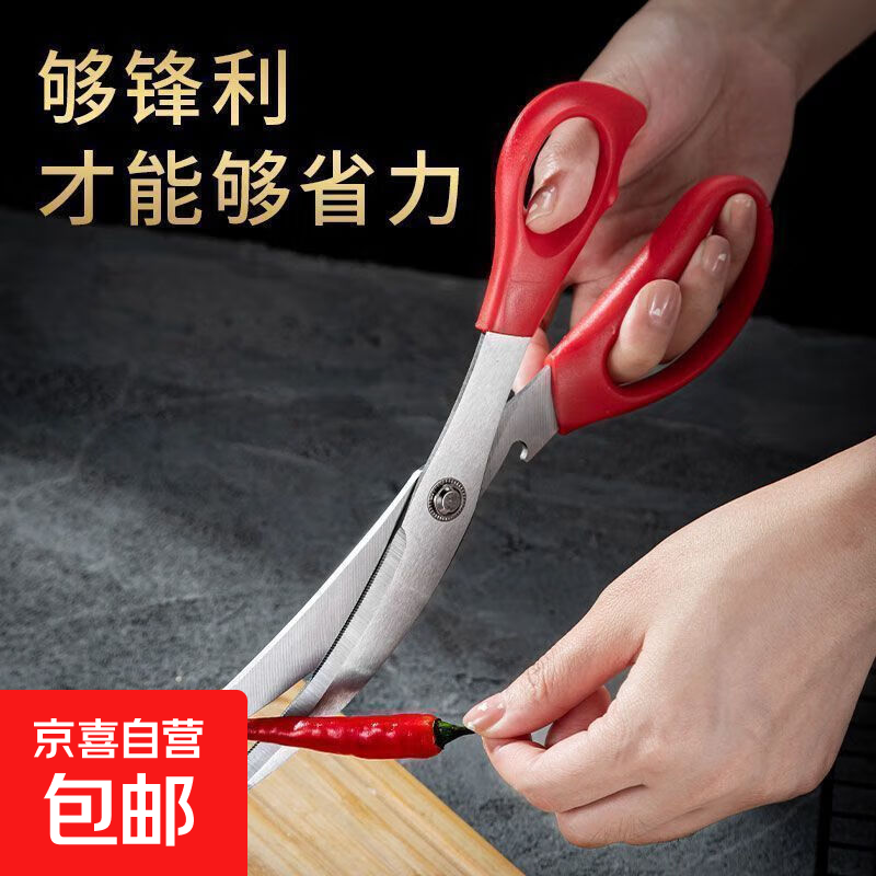 不锈钢弯刃锋利烤肉剪刀韩式牛排烧烤火锅辅食家用餐厅厨房必备剪 红色-2把