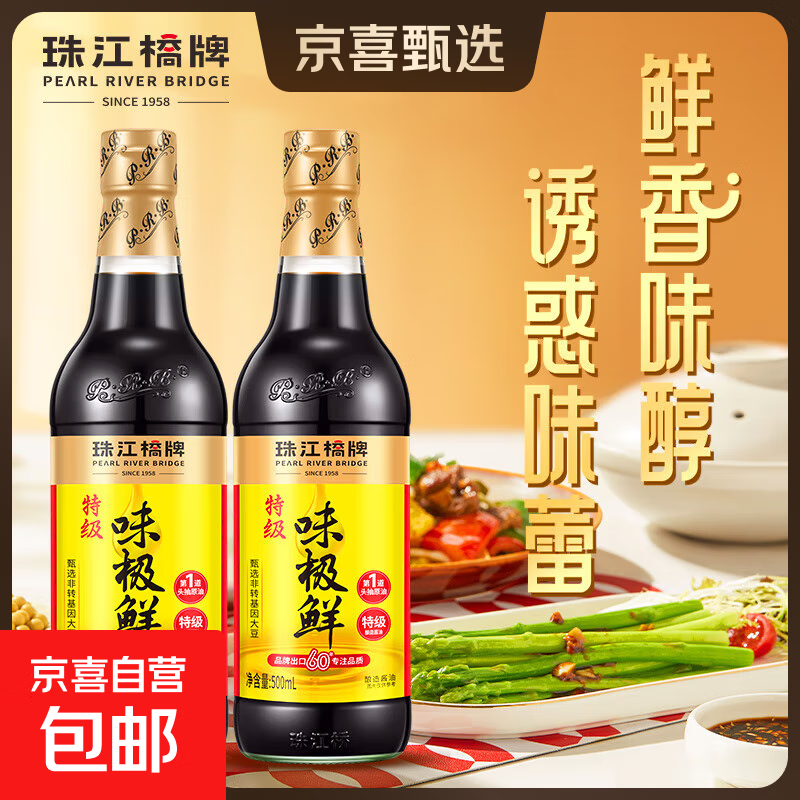 珠江桥牌特级味极鲜酱油黄豆酿造特级生抽豉油点蘸炒菜凉拌腌制 特级味极鲜500ml*2