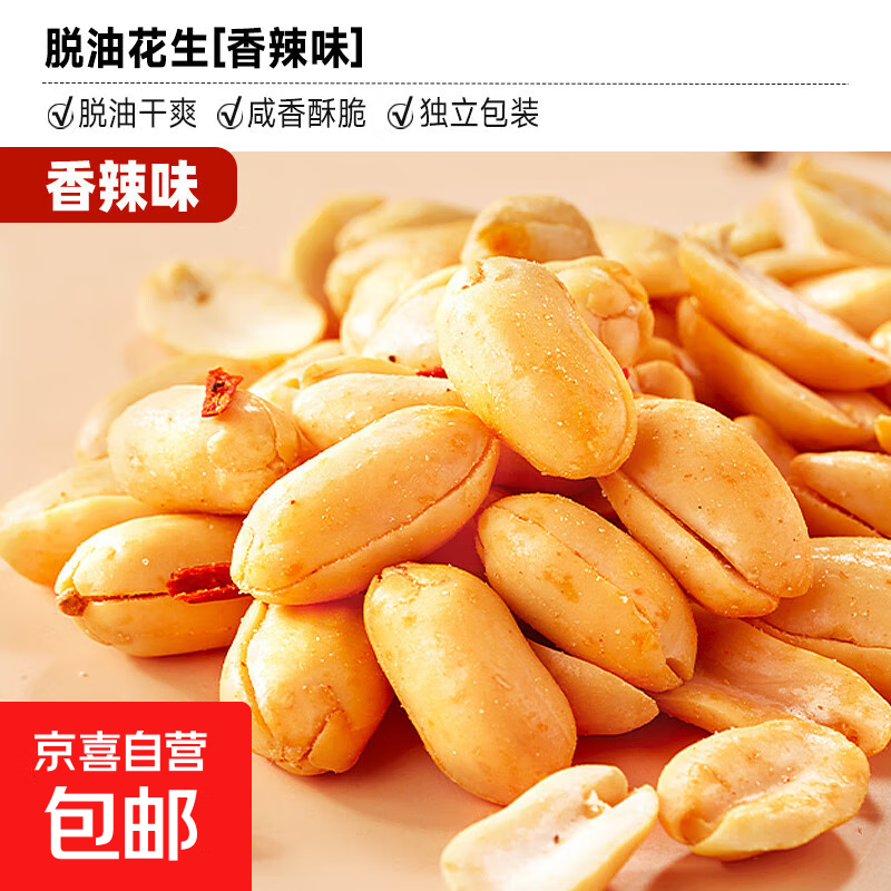 比比赞脱油花生米解馋香辣味去壳花生下酒小零食小吃炒货休闲食品 脱油花生(香辣味)15g*3