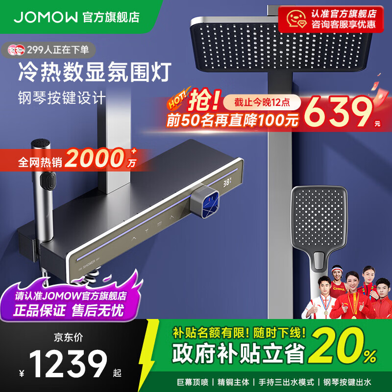 JOMOW卫浴恒温淋浴花洒套装全套一体全铜一体式上门安装2025新款花洒 509枪灰色【普通冷热+水温实时数显】包安装/拆旧