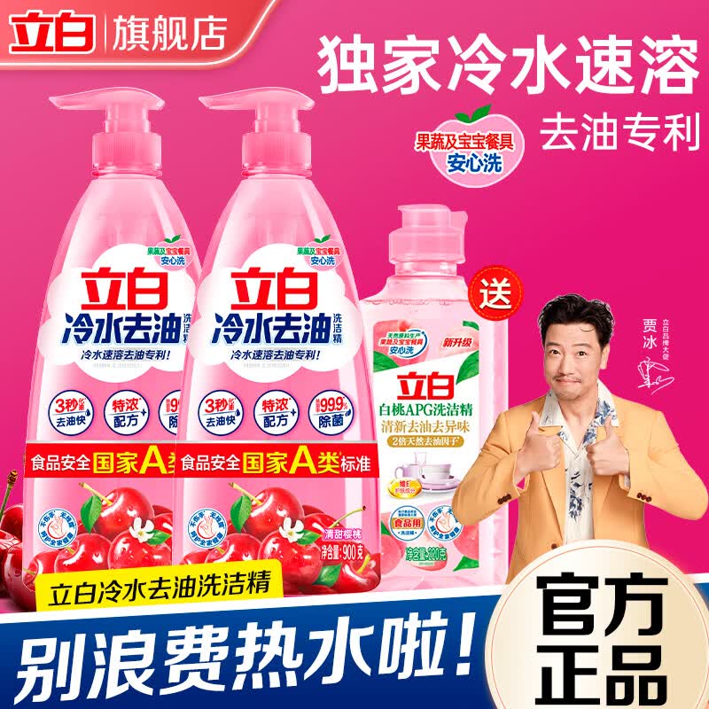 立白洗洁精白桃APG洗洁精洗碗液宝宝餐具果蔬洗洁剂高效去油除味家用 冷水速溶洗洁精900g*2瓶+220g白桃洗洁精