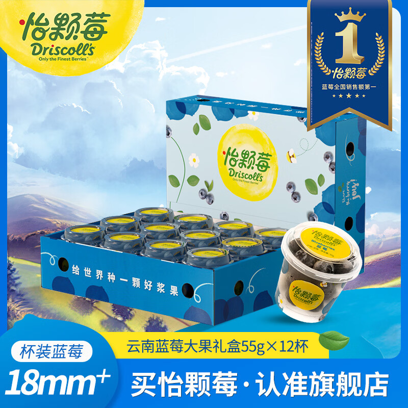 怡颗莓【颗颗饱满】当季云南蓝莓 国产蓝莓 新鲜水果送礼 【杯装蓝莓】超大果礼盒 55g*12杯