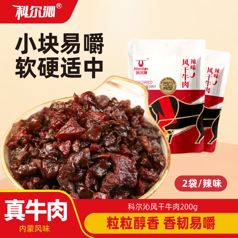 科尔沁手撕风干牛肉粒(口感偏软) 辣味200g*2袋休闲零食肉干肉脯